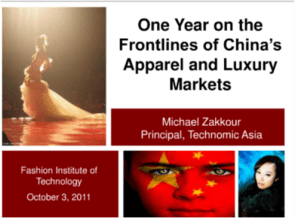 - « One year on the frontlines of China’s apparel and luxury markets ». Une présentation de Technomic Asia (Octobre 2011)