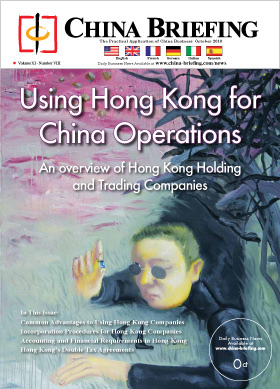 - Le numéro d’octobre du China Briefing aborde le sujet du recours à HK comme base des opérations en Chine. Il discute entre autres des avantages de travailler avec des entreprises de HK, des procédures d’incorporation, des règles financières et fiscales et des accords fiscaux (9-2010)