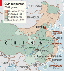 - Il y aurait plus de 112 millions de travailleurs manufacturiers en Chine. Ils coûtent en moyenne 0,81 $ de l’heure, soit 2,7 % du coût d’un ouvrier américain. Néanmoins, les salaires ont augmenté de 9 % entre 2002 et 2006 et jusqu’à 11 % dans les villes. Contrairement à ce qui est souvent dit dans le médias, les travailleurs migrants sont toujours abondants, mais les distances qu’ils parcourent pour se trouver du travail pourrait bien être moins grandes dans les années à venir. En effet, avec les politiques gouvernementales favorisant le développement de l’intérieur du pays, la mappe industrielle de la Chine est en train de se redessiner, favorisant le déplacement des unités de production de régions côtières comme Beijing, Shanghai et Guangzhou vers une ville comme Chongqing et des provinces comme le Sichuan et l’Anhui. Reste à convaincre nos gens d’affaires que l’expérience acquise en Chine sera mieux exploitée à se tourner vers ces régions qu’à se déplacer vers de nouveaux marchés émergents (The Economist, 29 juillet 2010)